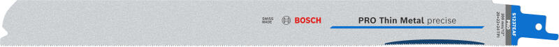 PRO Thin Metal precise S1237EAF fémcsövek és -profilok vágásához hosszú élettartammal A fémmegmunkálóknak, felújítóknak és villanyszerelőknek rendszeresen kell fémcsöveket és más acélszerelvényeket vágniuk a szablyafűrésszel. A PRO Thin Metal precise S1237EAF kifejezetten az ilyen feladatokra készült. A hosszú élettartamot és tiszta vágást egyaránt kínáló PRO Thin Metal precise S1237EAF egy fejlett bimetál szablyafűrészlap, az ívelt fogakat kiemelő HSS csíkkal. A vastag szénacél testtel kiegészülve ez egy nagyszerű fűrészlap, ha vékony fém minőségi, pontos vágása a cél.