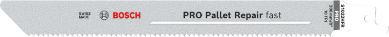 PRO Pallet Repair fast S1022HFR a hosszú élettartamú munkavégzéshez raklapokon A raklapjavítás kemény, de nélkülözhetetlen munka, és az erre a feladatra szakosodott elektromos szerszámos szakemberek értékelni fogják a PRO Pallet Repair fast S1022HFR fűrészlapot – mely ugyanolyan különleges és professzionális, mint ők. The PRO Pallet Repair fast S1022HFR fűrészlap kitartásra és hatékonyságra készült. Az edzett HSS fogakat rendkívül rugalmas HCS testtel kombinálja.