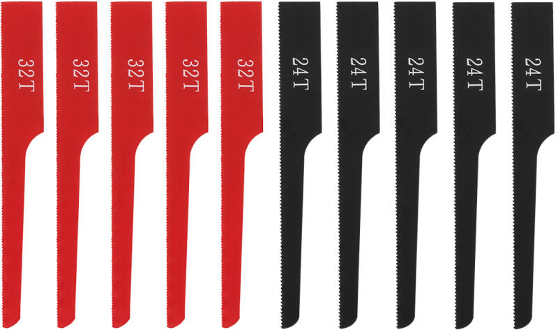 NEO Fűrészlap készlet 14-034 pneumatikus orrfűrészhez. 24 és 32 fogú lapok, 10db. Alkalmasak műanyag, fém és fa vágásához. Nélkülözhetetlen kiegészítői lesznek műhelyének. A Neo márka a professzionális igényeket is kielégíti.