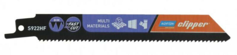 A Norton Clipper szablyafűrészlapjai gyorsaságot és hatékonyságot biztosítanak a felhasználó számára. Három anyagváltozatban kaphatók: TCT, BIM és BIM + . Ennek az átfogó ajánlatnak köszönhetően különféle anyagokat vághat, a kis téglától a műanyagokig és raklapokig. A fűrészlap típusától függően jól működnek gyors, egyenes és ívvágási műveletekben. Fa szögekkel / fém (5-100 mm), fémlemez, csövek, alumínium profilok (3-12 mm) raklap.   MŰSZAKI ADATOK Gyártói cikkszám: 70184608364Típus: S 922 HF