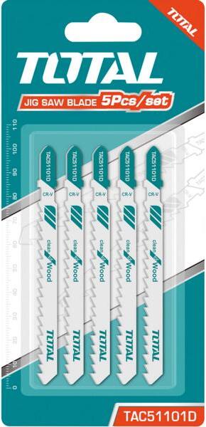 5 db-os szúrófűrészlapok, fából, HCS. Anyag: HCS. Márka: TOTAL. További paraméter: vágófelület hossza 75 mm.